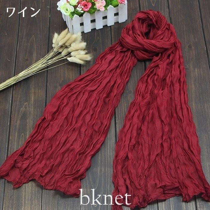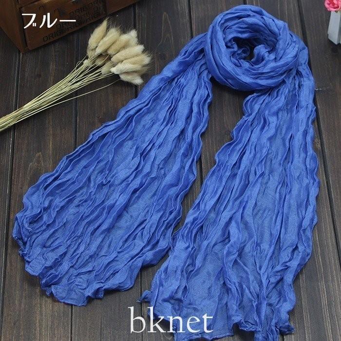【値下げ】ストールクシュクシュしわ加工シンプル無地大判薄手レディースメンズ男女兼用UV対策冷房対策紫外線対策春夏