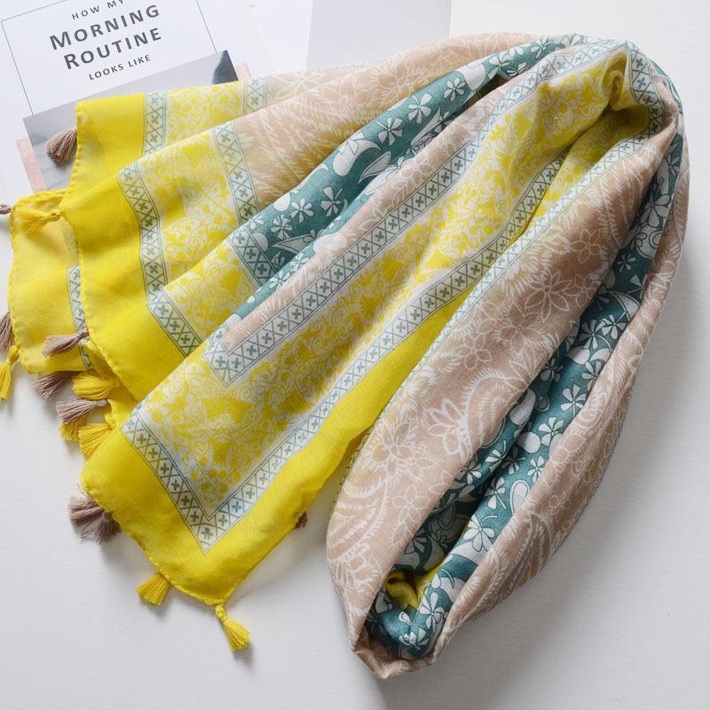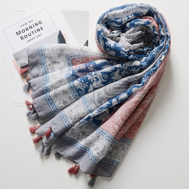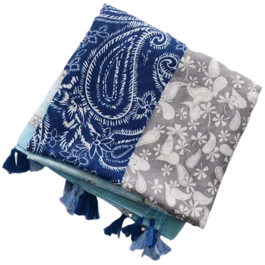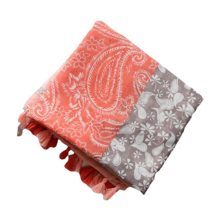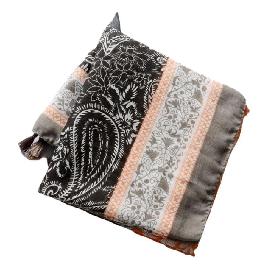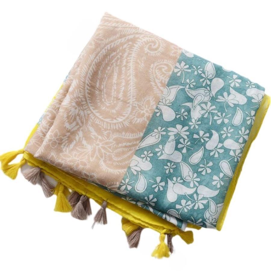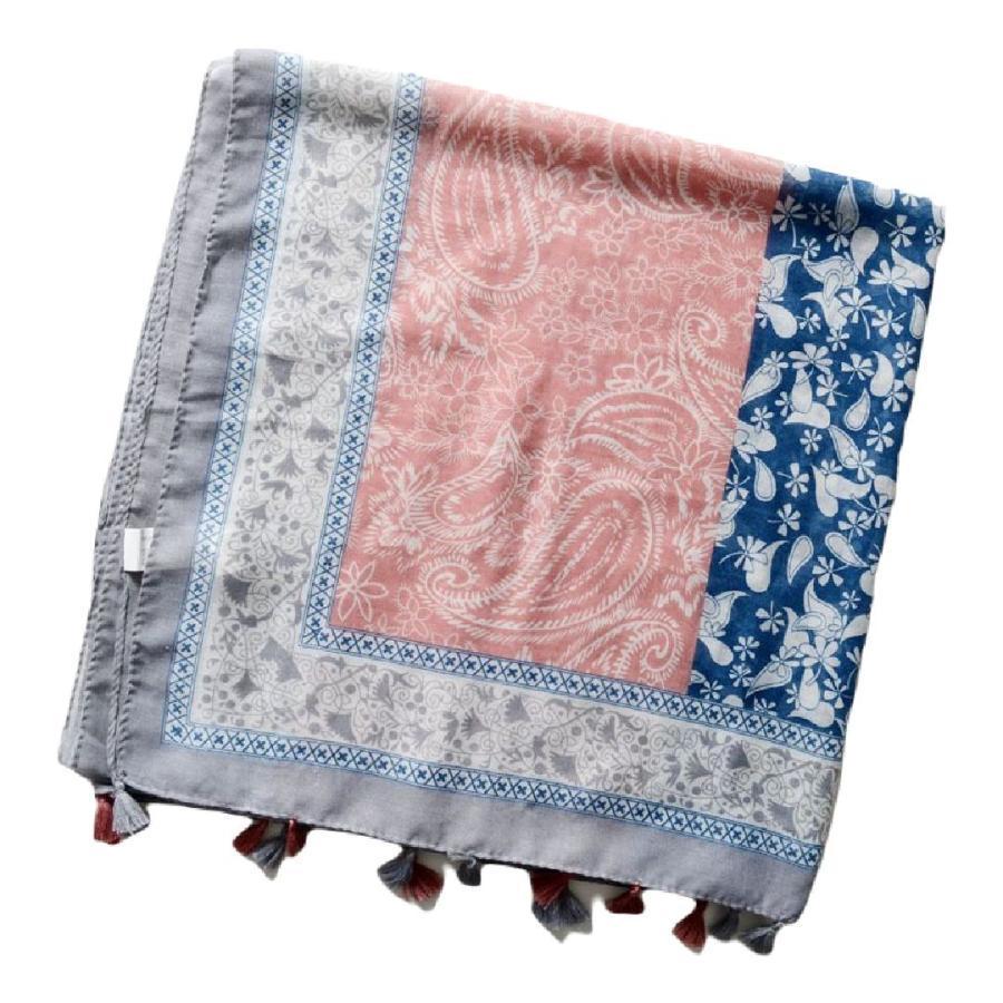 ガーゼストール ガーゼマフラー レディース 女性 ペイズリー柄 民族的 タッセル付き カジュアル おしゃれ UV対策 紫外線対策 日焼け防止 薄手 春