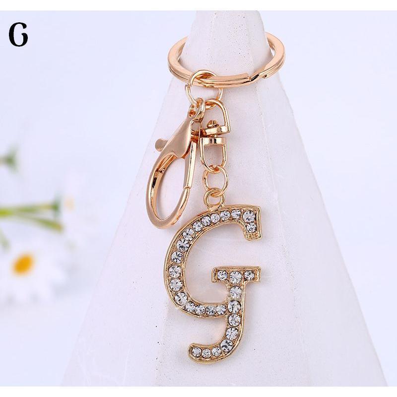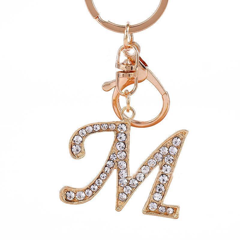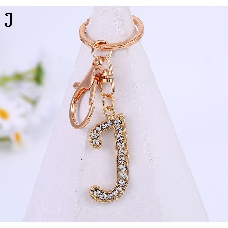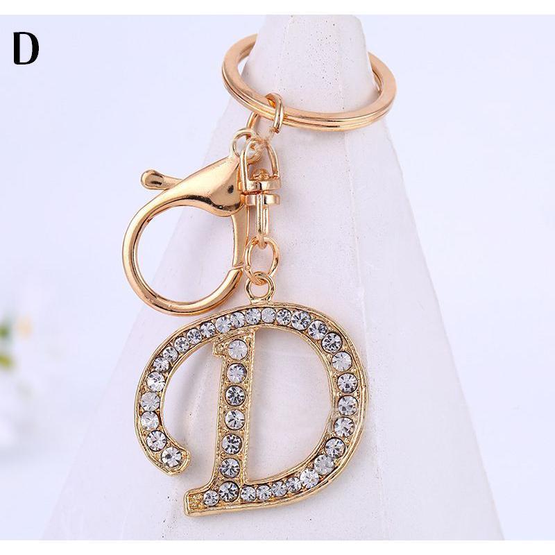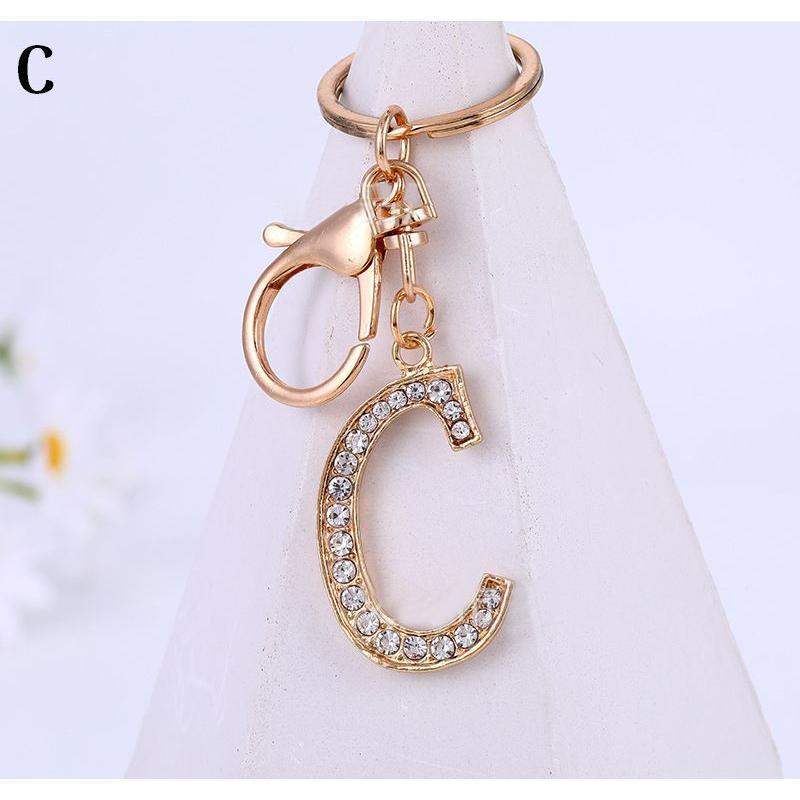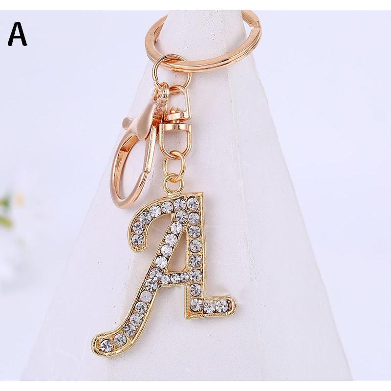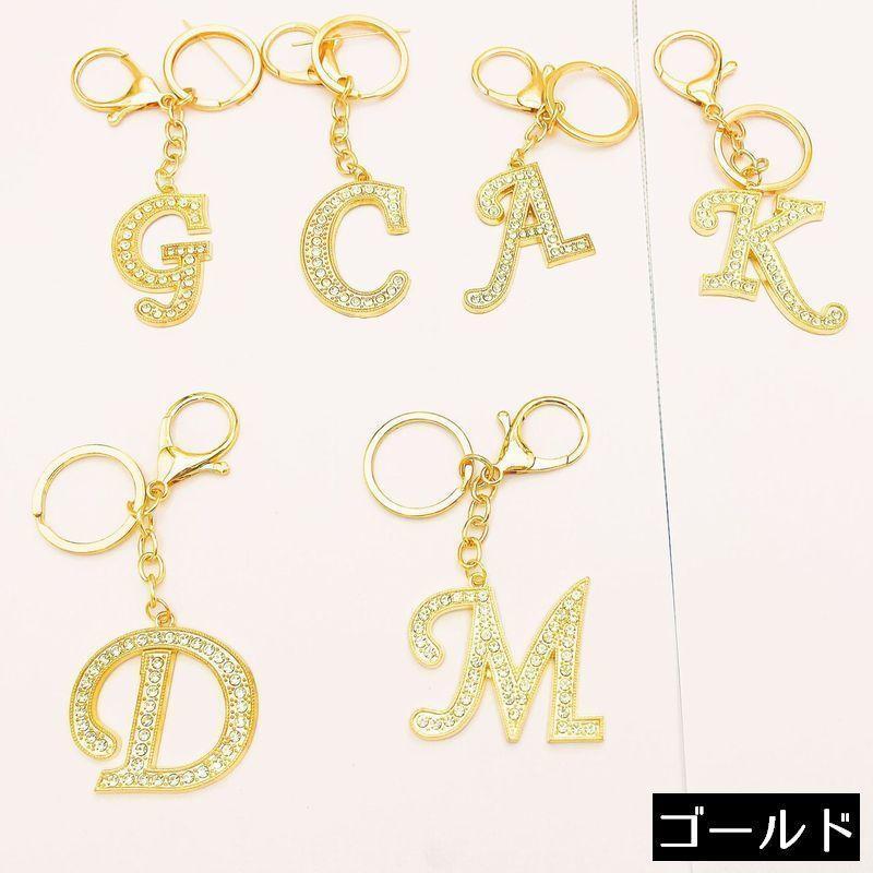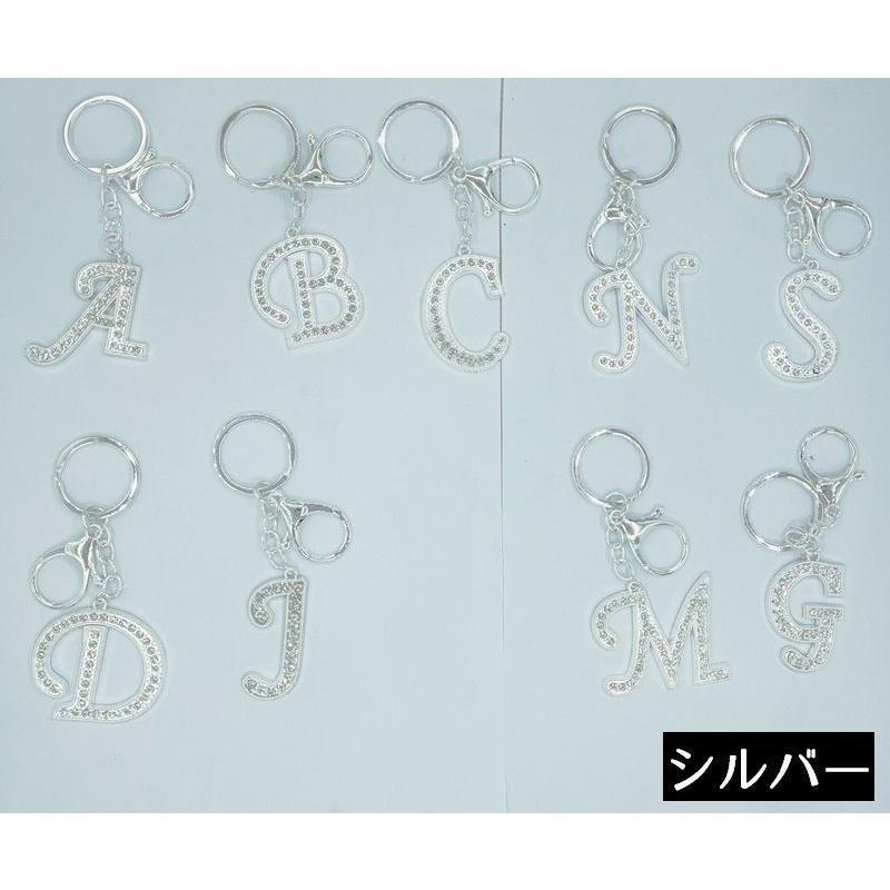 キーホルダー キーリング レディース バッグチャーム アルファベット 大文字 英語 英字 筆記体 イニシャル ラインストーン