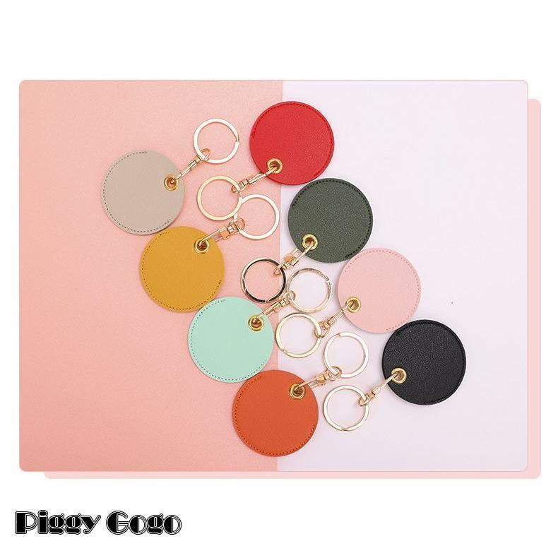 キーホルダー キーリング レディース メンズ レザー調 バッグチャーム プレート ラウンド サークル 円型 丸型 無地 おしゃれ