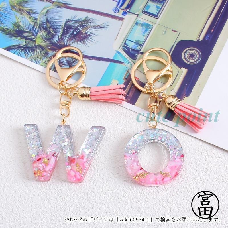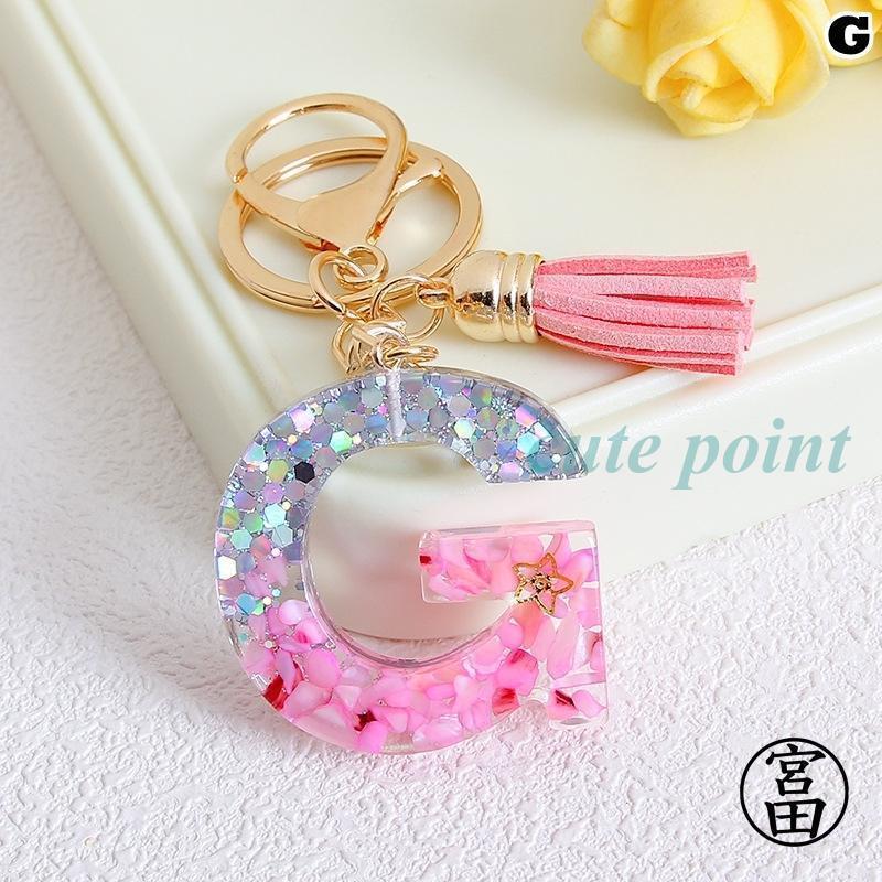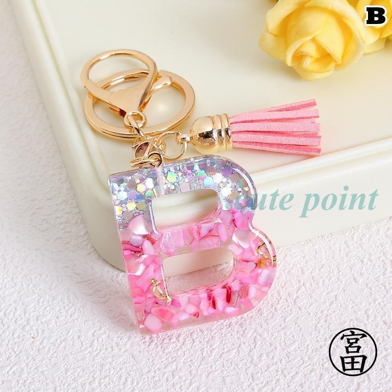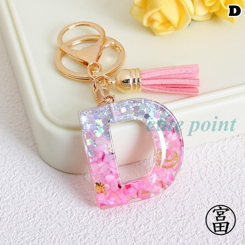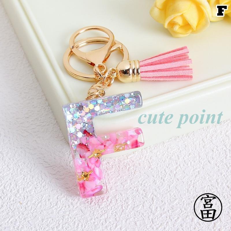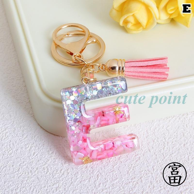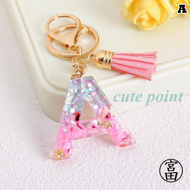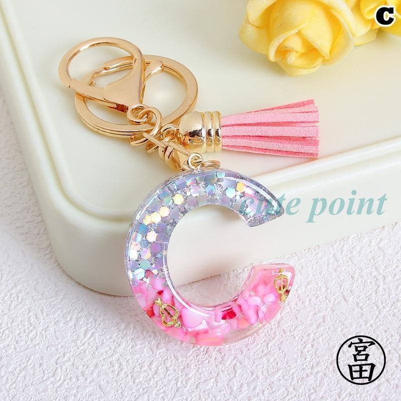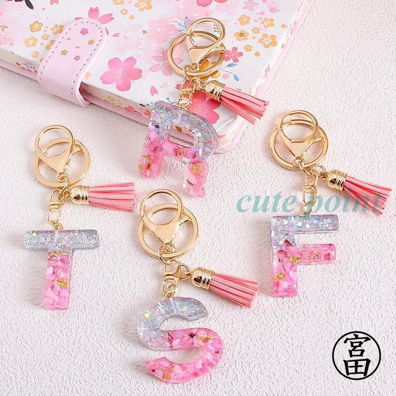 キーホルダー キーリング レディース 女性 お揃い ペアルック ファッション雑貨 カニカン 二重リング フリンジ アルファベット イニシャル ピンク