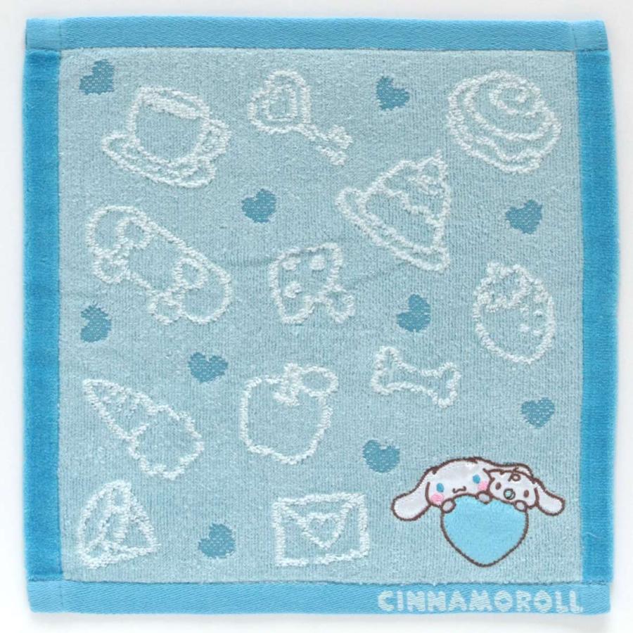 シナモンロール タオルハンカチ ハートアップリケ ブルー
