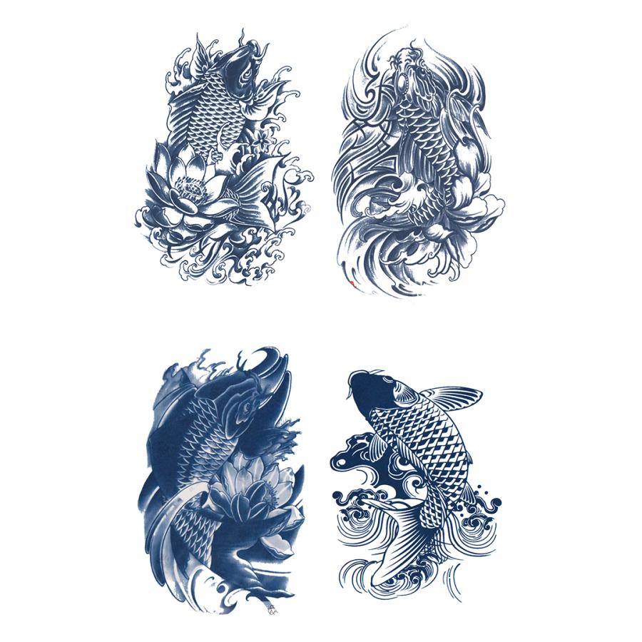 ジャグアタトゥー タトゥーシール 2週間で消えるタトゥー ヘナタトゥー 本物志向 鯉 4枚セット