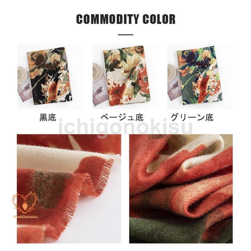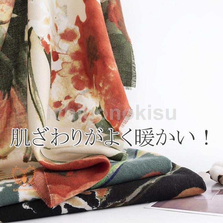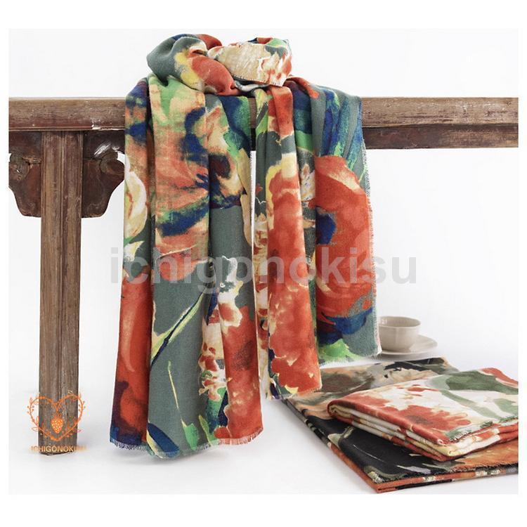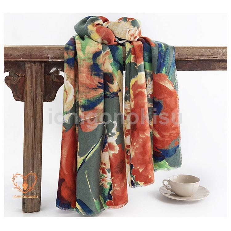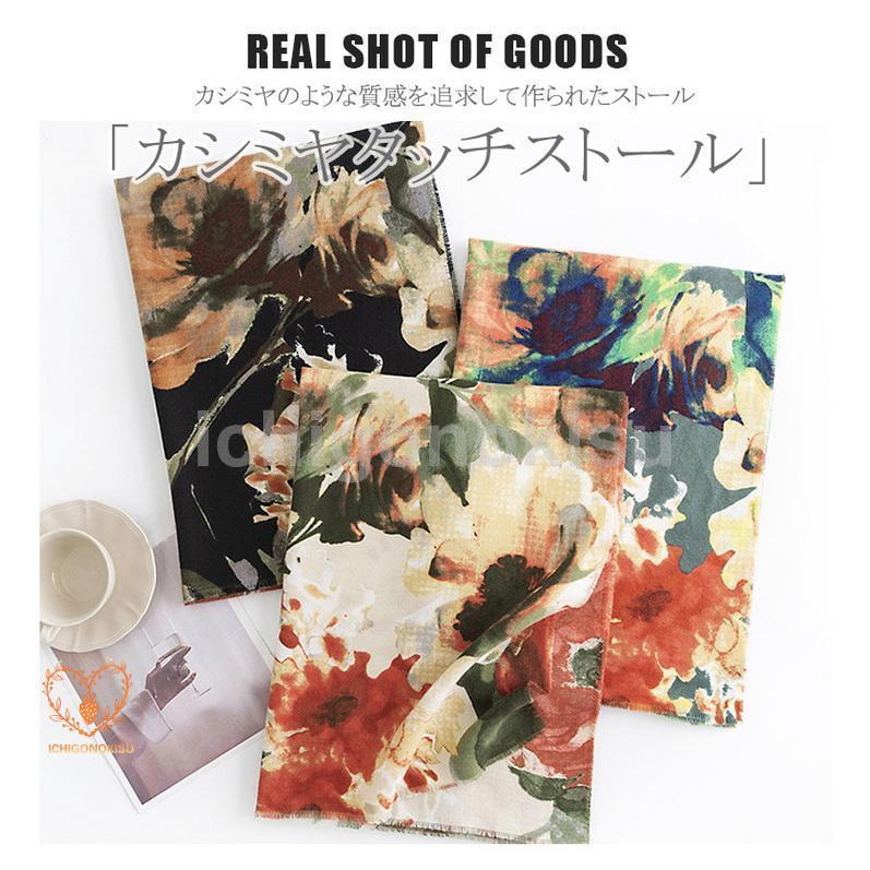 ストール フラワー 花柄 カシミヤ タッチ 大判 ひざ掛け 肩掛け ショール 着物 羽織 防寒 秋冬 レディース