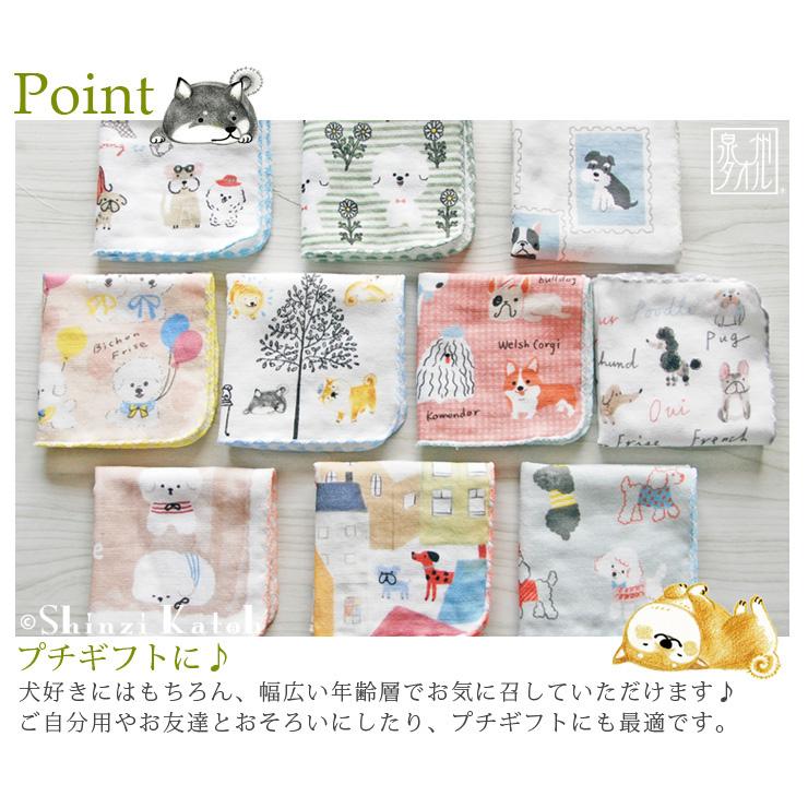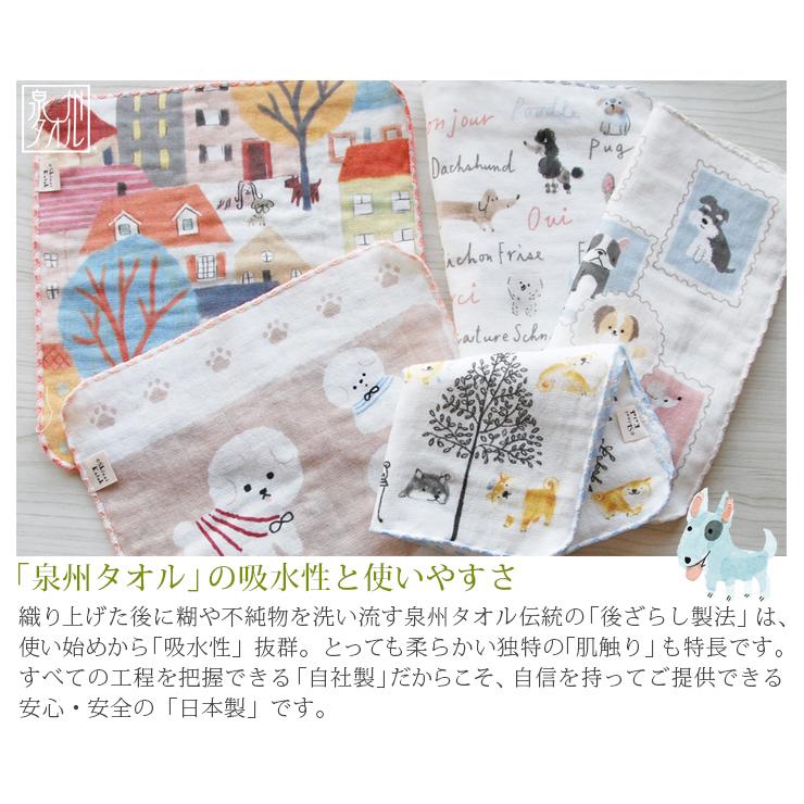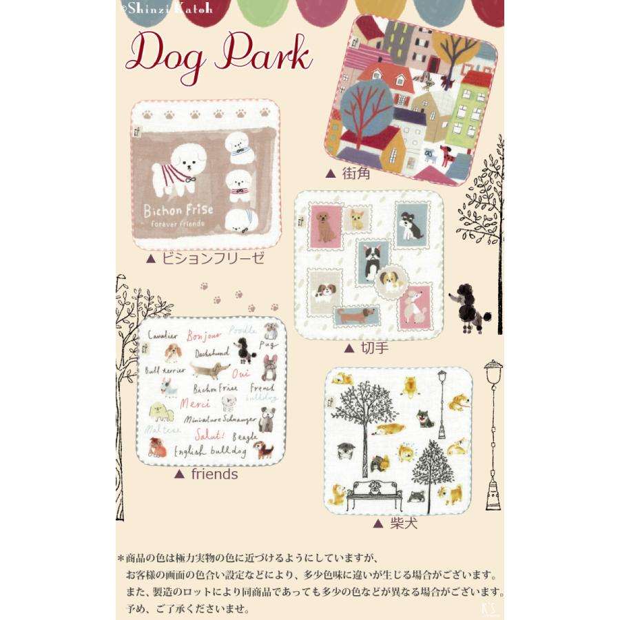 タオルハンカチ プレゼント 犬 イヌ 柴犬 ビションフリーゼ 犬グッズ 雑貨 日本製 Shinzi katoh ドッグパーク 約23×23cm ガーゼ 無撚糸 かわいい 泉州タオル