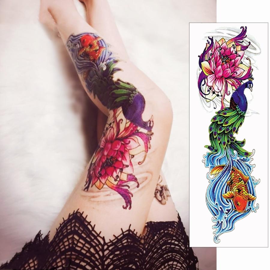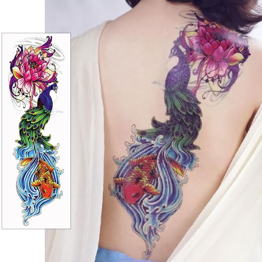 タトゥーシール 肩から手首 孔雀 鯉 蓮 qb3058特長・3枚セット