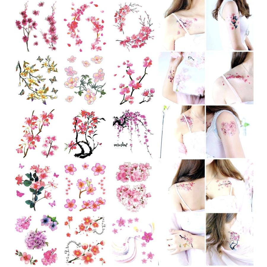 タトゥーシール 花 腕 淡く美しい 肩 胸元 鎖骨 背中 脚 防水 リアル 長持ち 小判 084