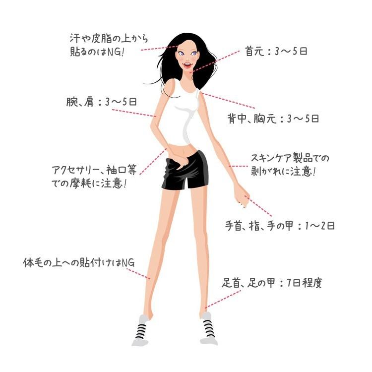 ・首元、腕、肩、背中、胸元など:約3〜5日