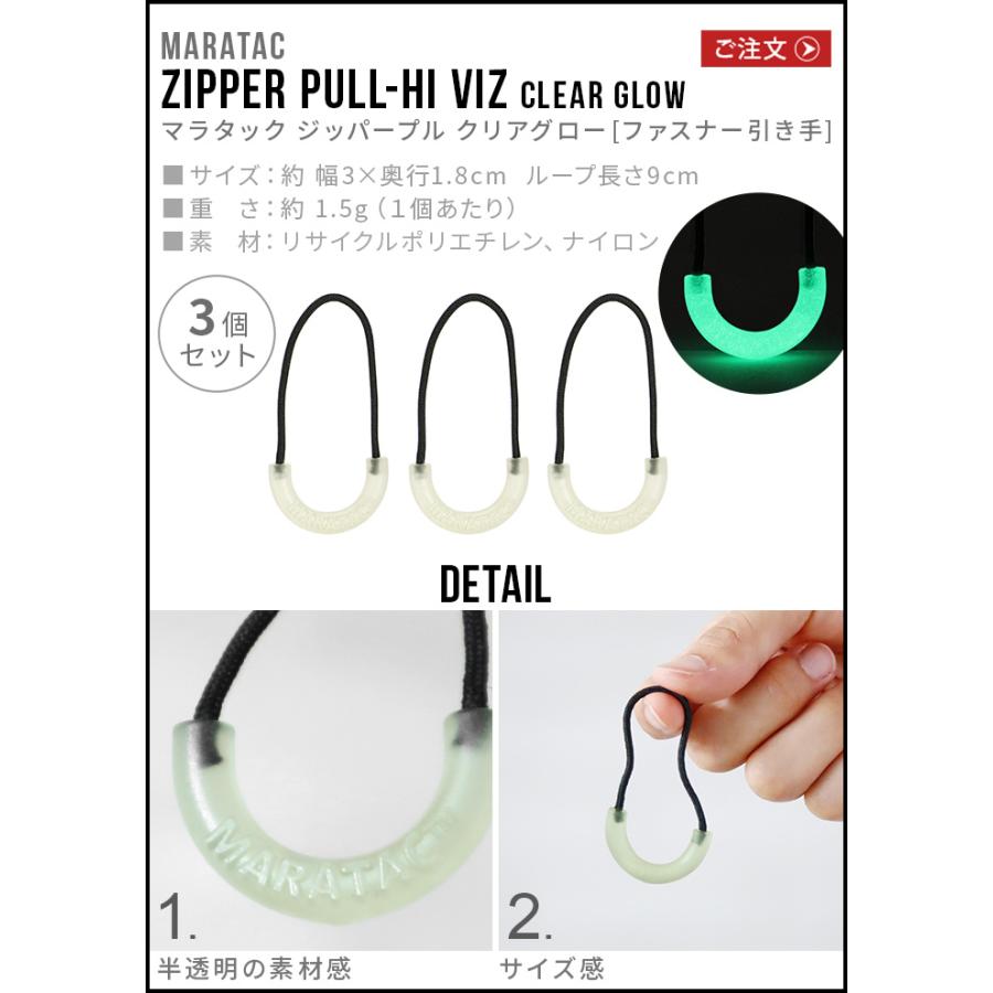 ネコポスOK ジッパータブ ジップタイ ファスナー 発光 蓄光 釣り Maratac Zipper Pull-Hi Viz Clear glow マラタック ジッパープル クリアグロー 3個入り