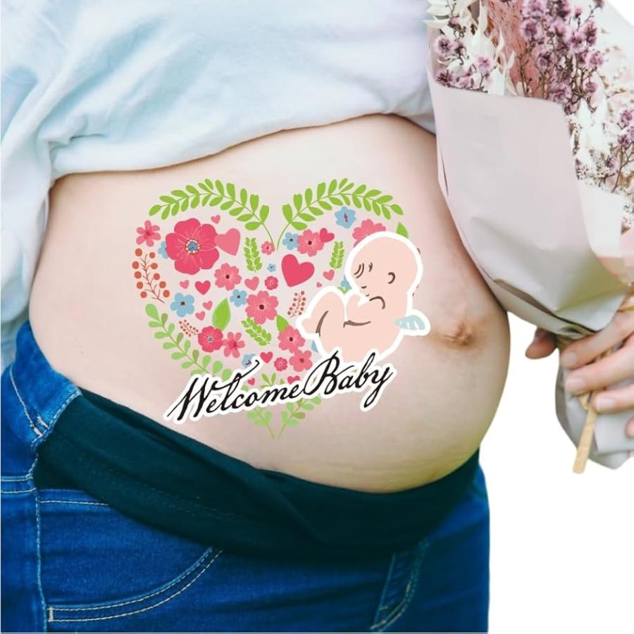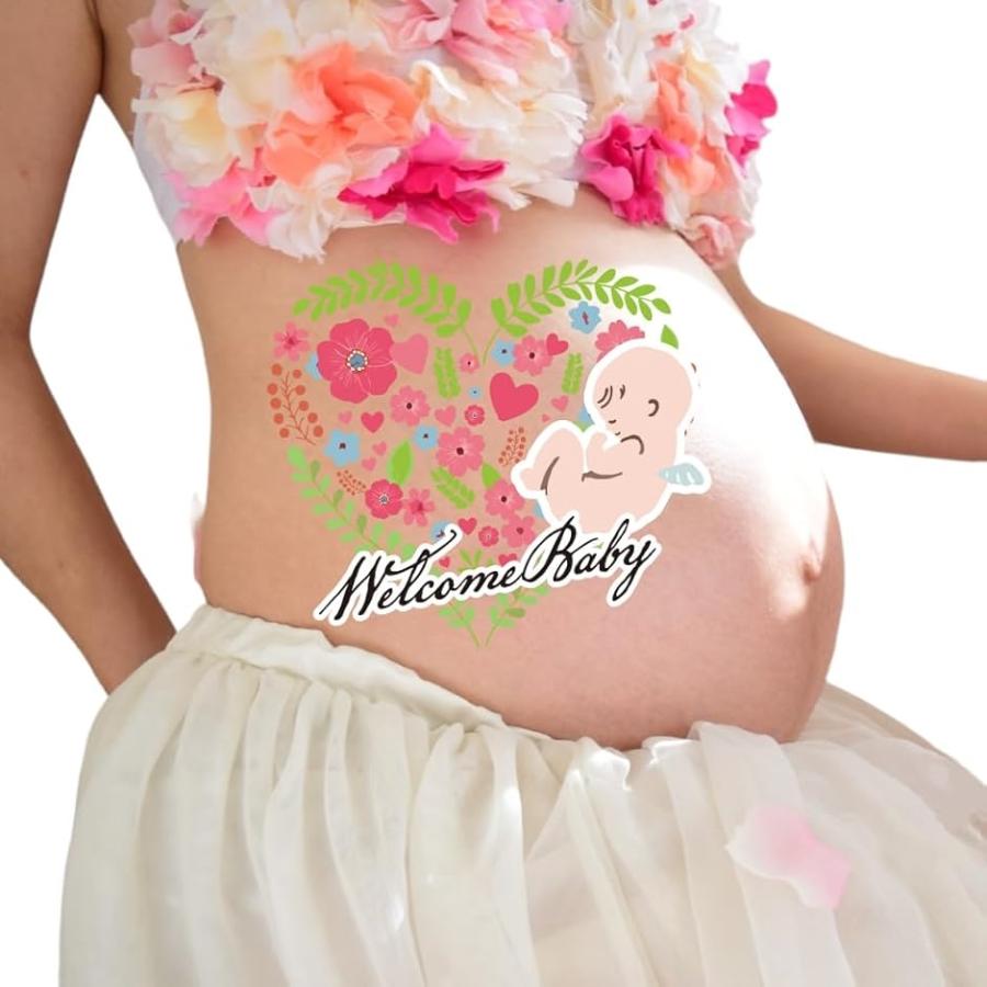 マタニティフォト ボディーシール タトゥーシール ボディペイント 妊娠記録 説明書付 練習用シール付(type13)