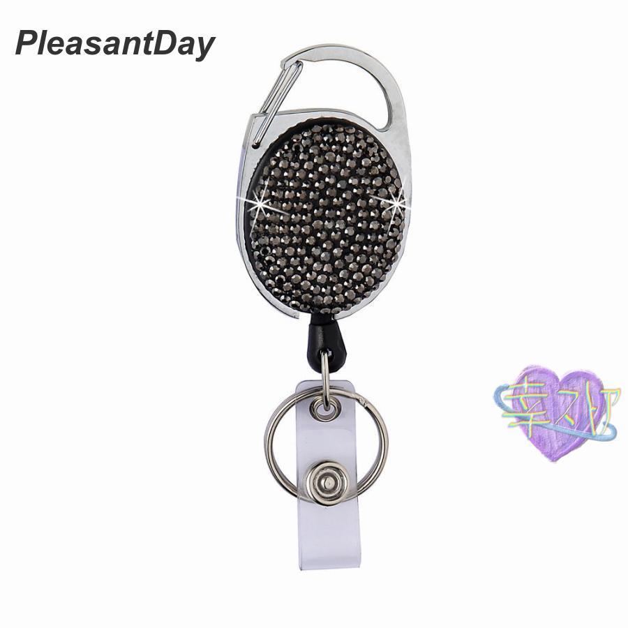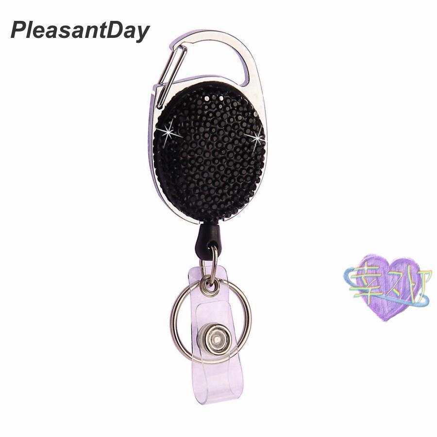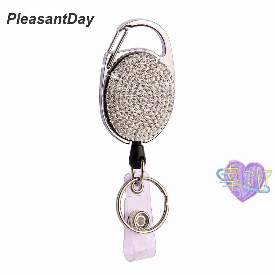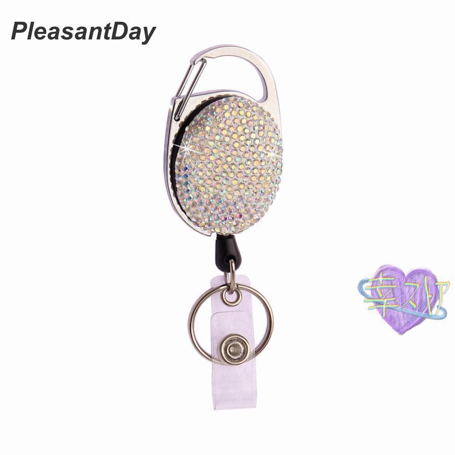 リールキーホルダー カラビナ クリップ 2WAY ベルトループ キーチェーン キーリング ラインストーン カードホルダー 伸縮式 ID IC 社員証