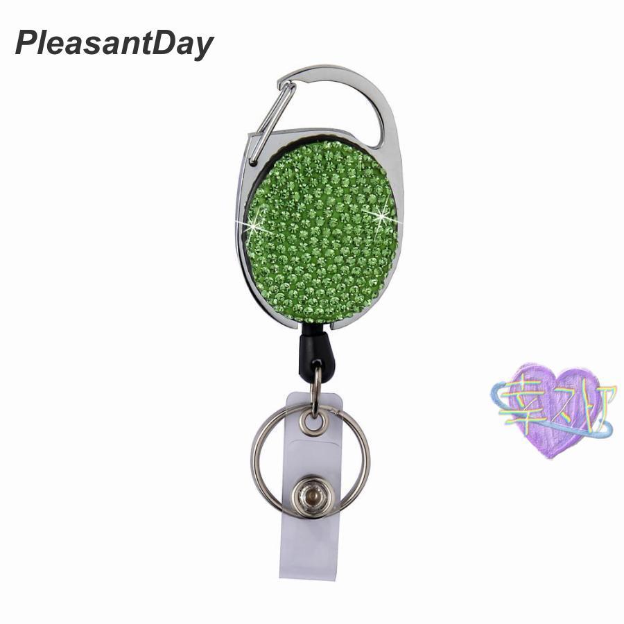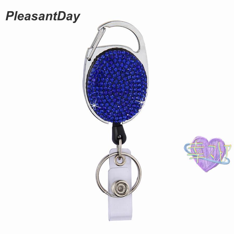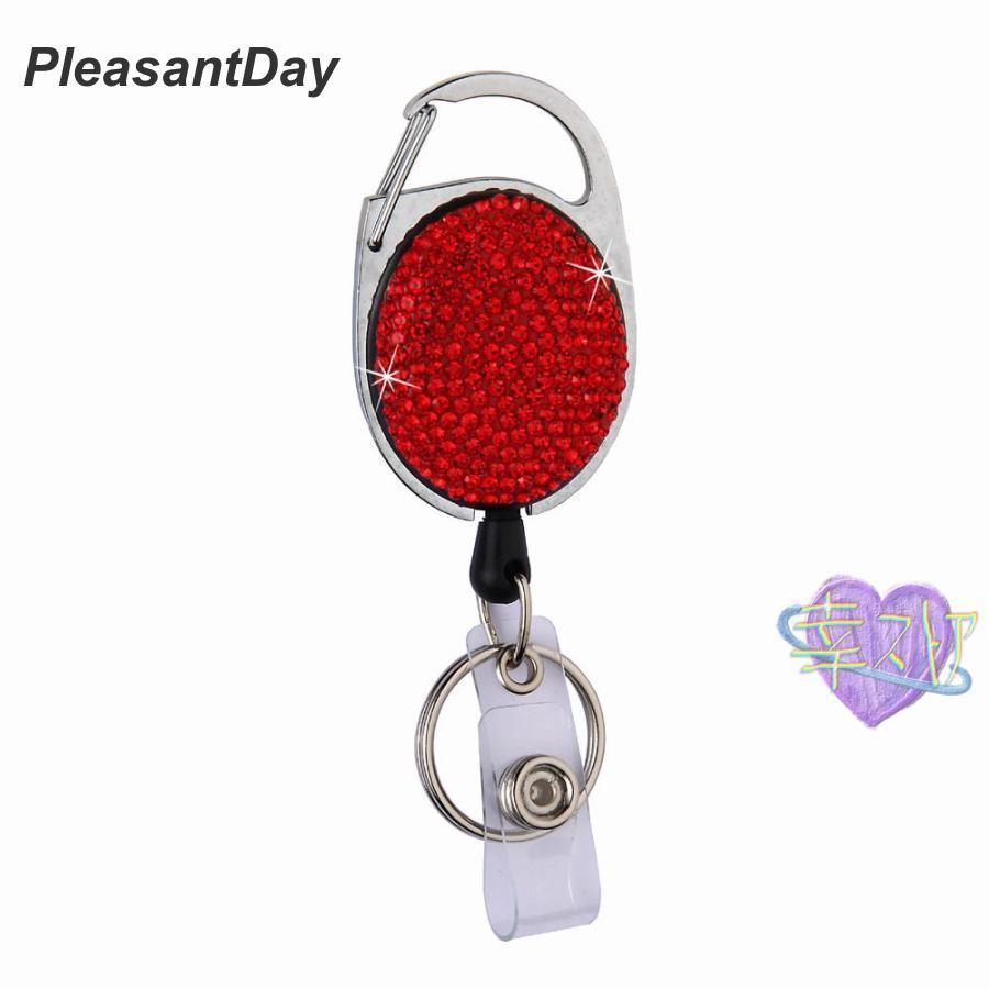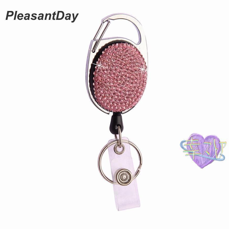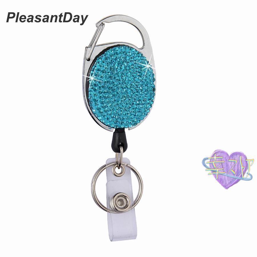 リールキーホルダー カラビナ クリップ 2WAY ベルトループ キーチェーン キーリング ラインストーン カードホルダー 伸縮式 ID IC 社員証