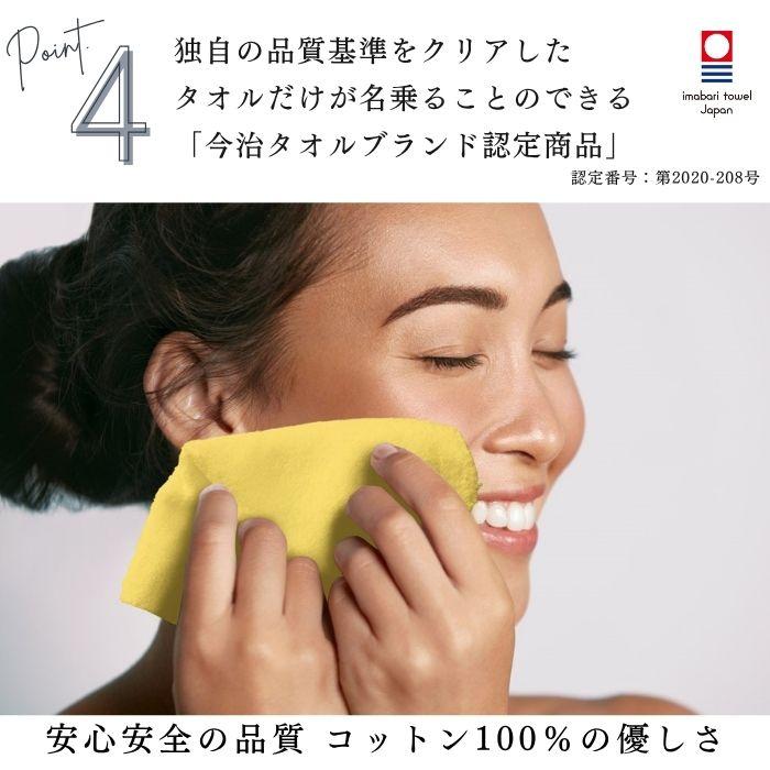 独自の品質基準をクリアしたタオルだけが名乗ることのできる「今治タオルブランド認定商品」で、 触れるだけでさっと水分を吸い取ってくれる高い吸水性を、使い始めから感じていただくことができます。