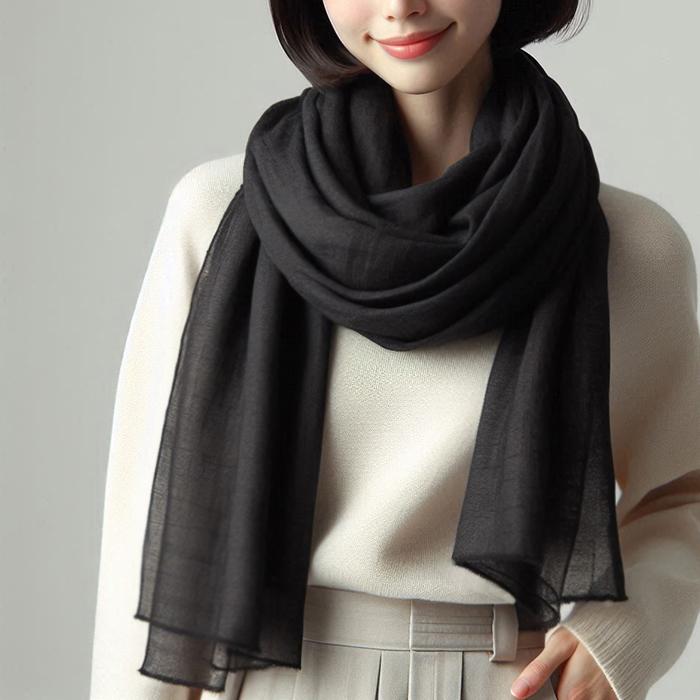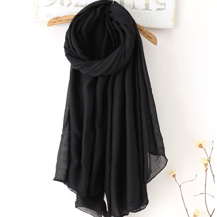 即納 黒いストール 無地 ロング 大判 スカーフ マフラー 薄手 ショール 夏 春 秋 大きいサイズ 柔らかい 綿麻 綿混 おしゃれ 定番 シンプル
