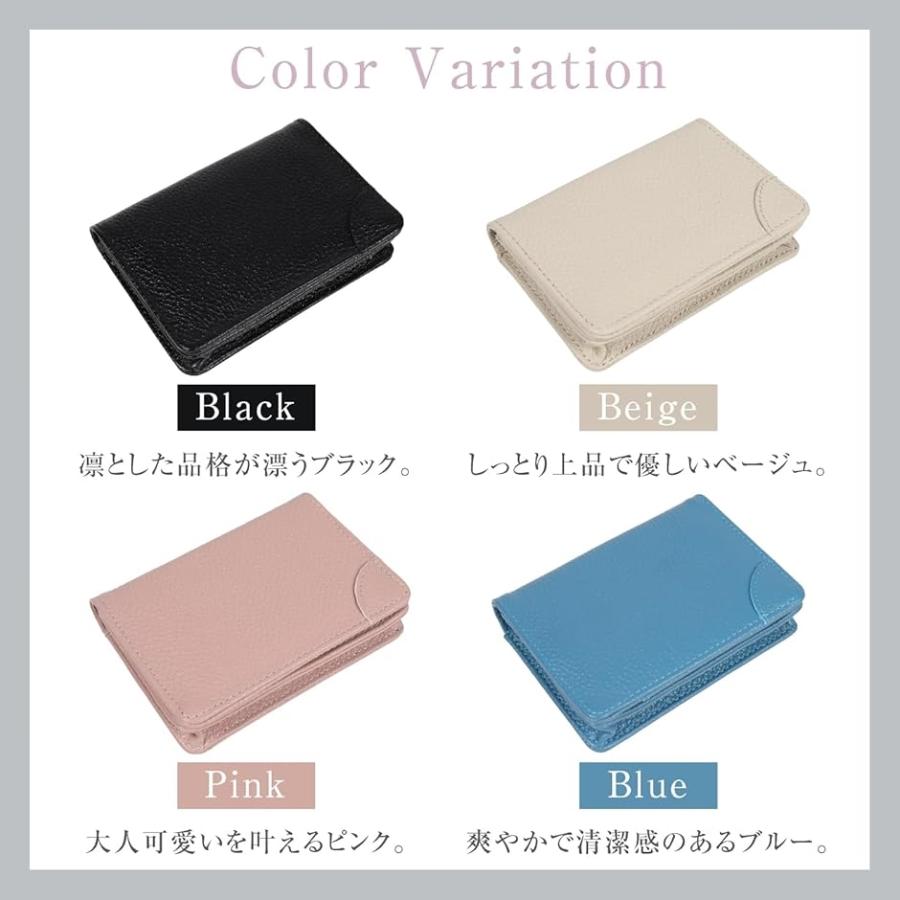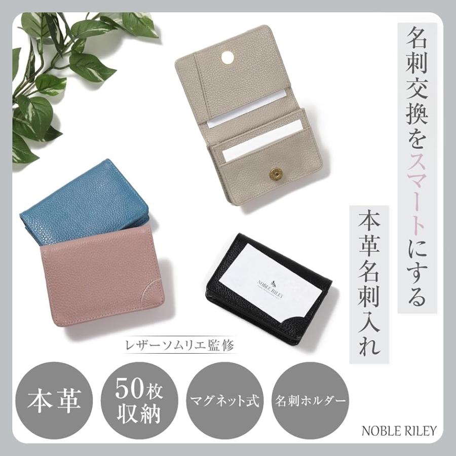 名刺入れ レディース 大容量 薄型 軽量 本革 レザー 名刺ケース 50枚収納(ブルー)