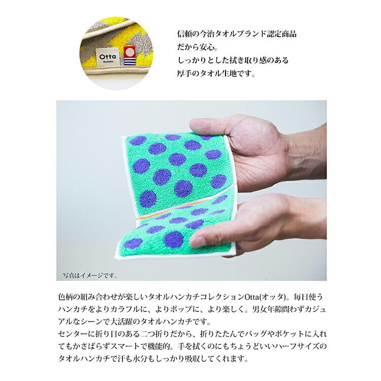 POPでカラフルな色&柄が楽しめるOttaシリーズ!使うのも貰うのも嬉しいハンカチタオル 二つ折り仕様でかさばらず、ポケットやポーチにスッと入って使いやすい