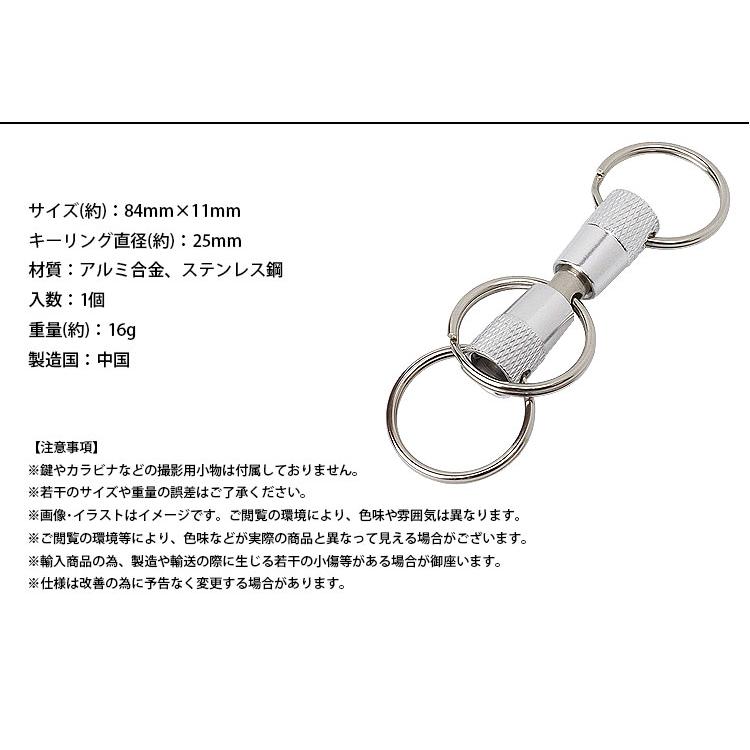 3分割 キーホルダー キーリング アルミニウム合金 分離 取り外し 持ち運び 軽量 小型 アウトドア 鍵 カギ
