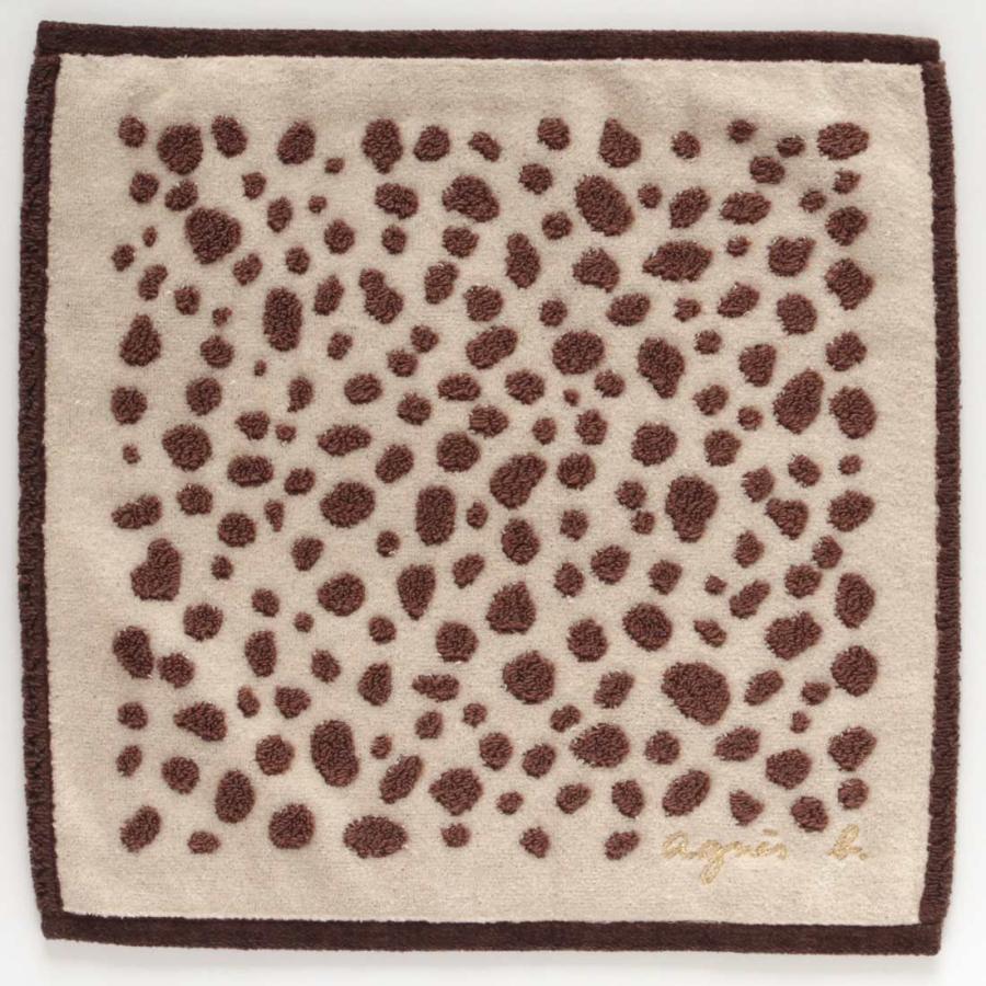 agnes b. アニエスベー 大判 タオルハンカチ(28cm)アニマルドット ライトブラウン