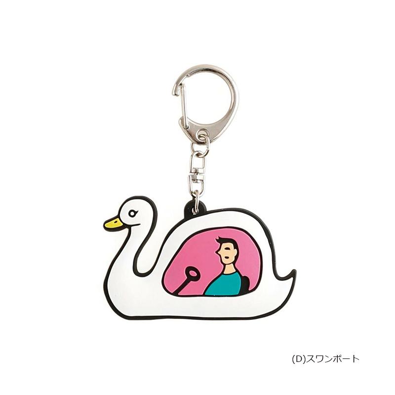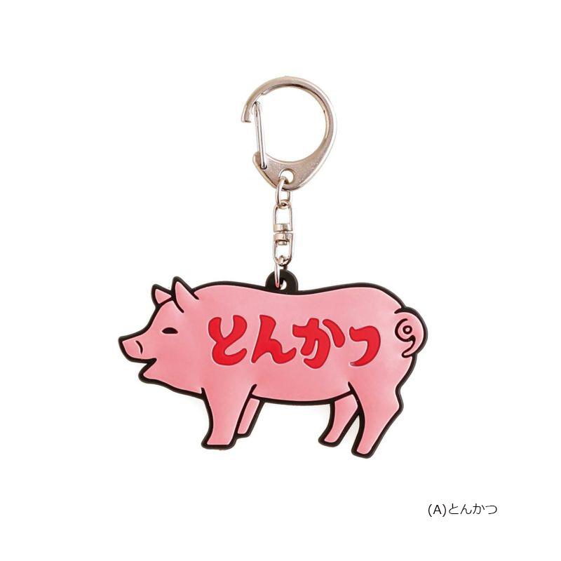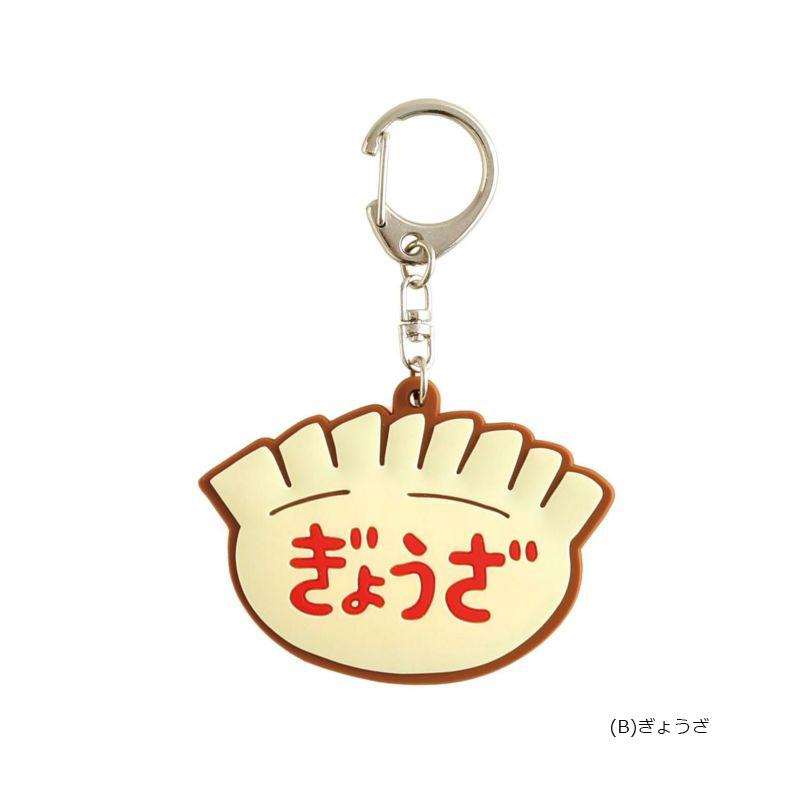 やわらかい半立体のラバーキーホルダーです。「とんかつ」や「ぎょうざ」など、なかなか見かけないちょっと個性派なモチーフを取り揃えました。取り外しやすいナスカンのキーチェーンなので、お手持ちのバッグやポーチに付けて楽しんでください。