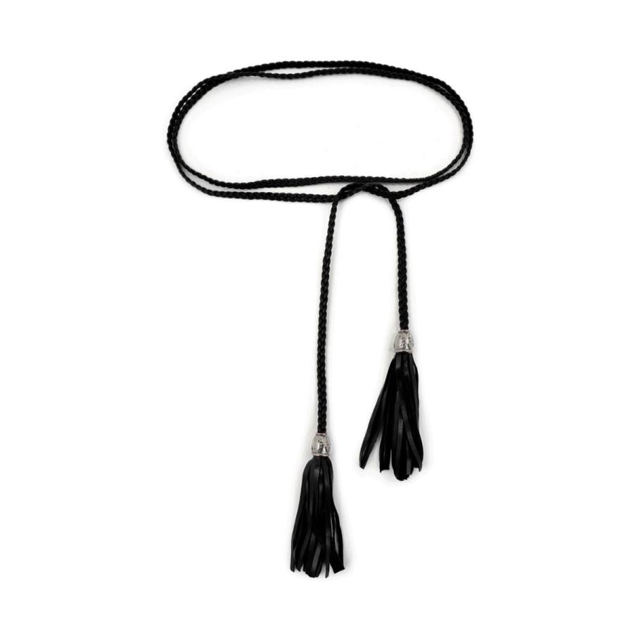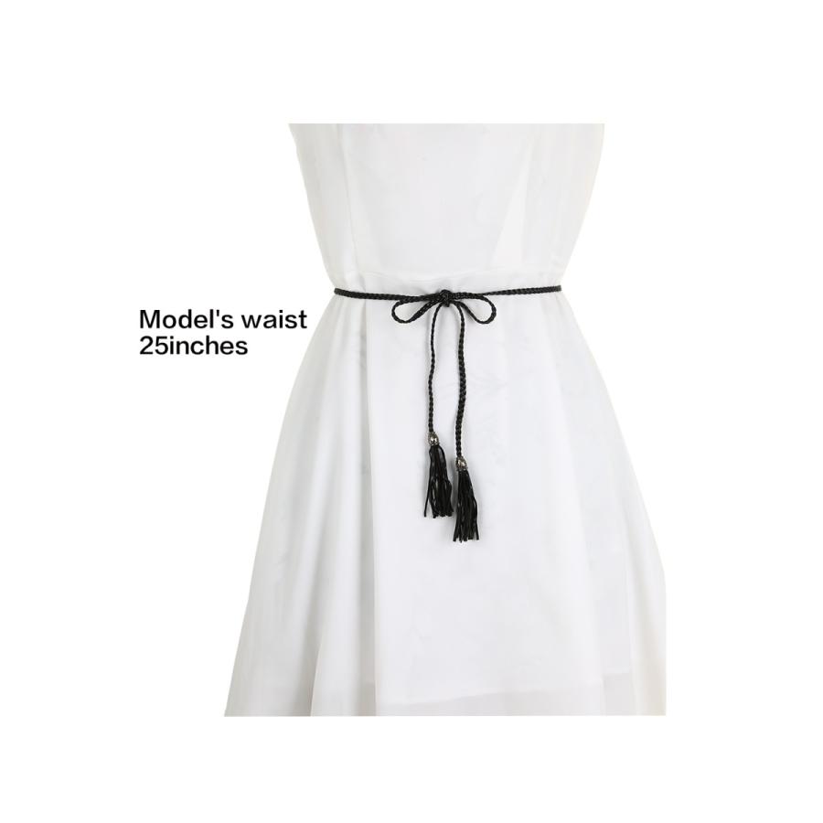 uxcell チェーンベルト 編み込み ウエストベルト タッセル飾り レディース 調整可能 ブラック