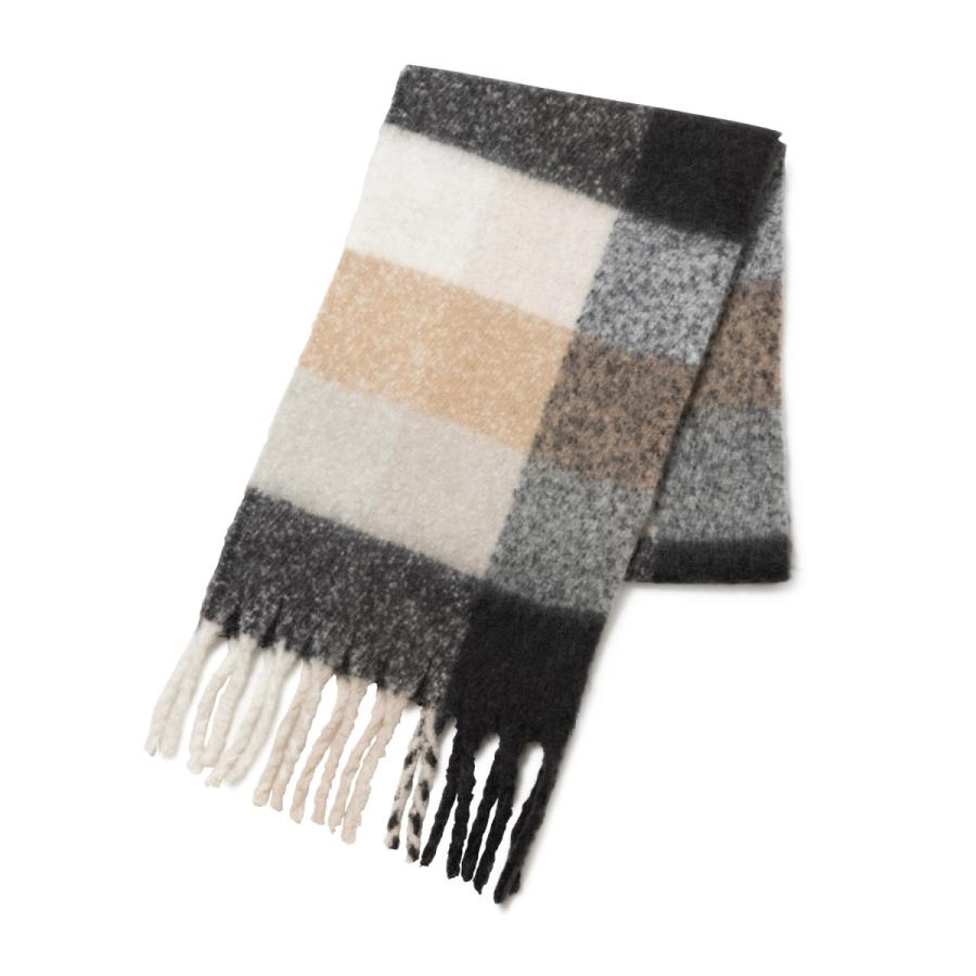 商品名:【リサイクルポリ】ブロックチェック太フリンジマフラー