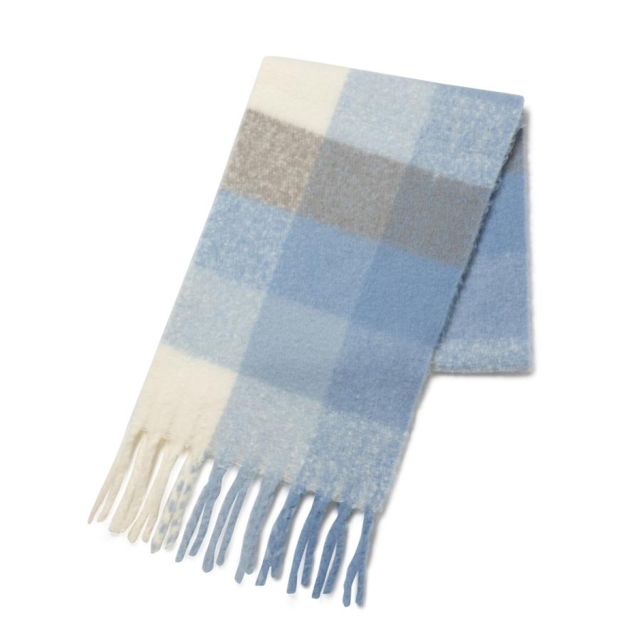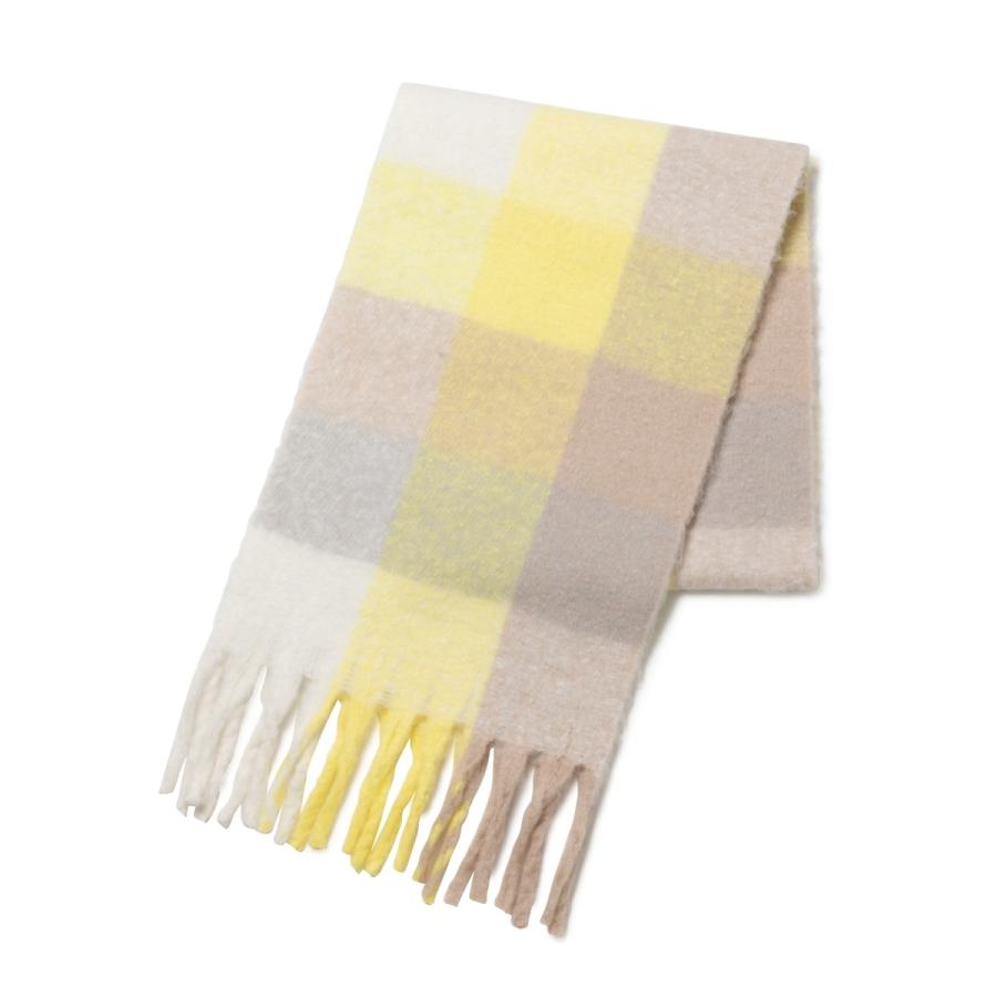 VIS 【リサイクルポリ】ブロックチェック太フリンジマフラー
